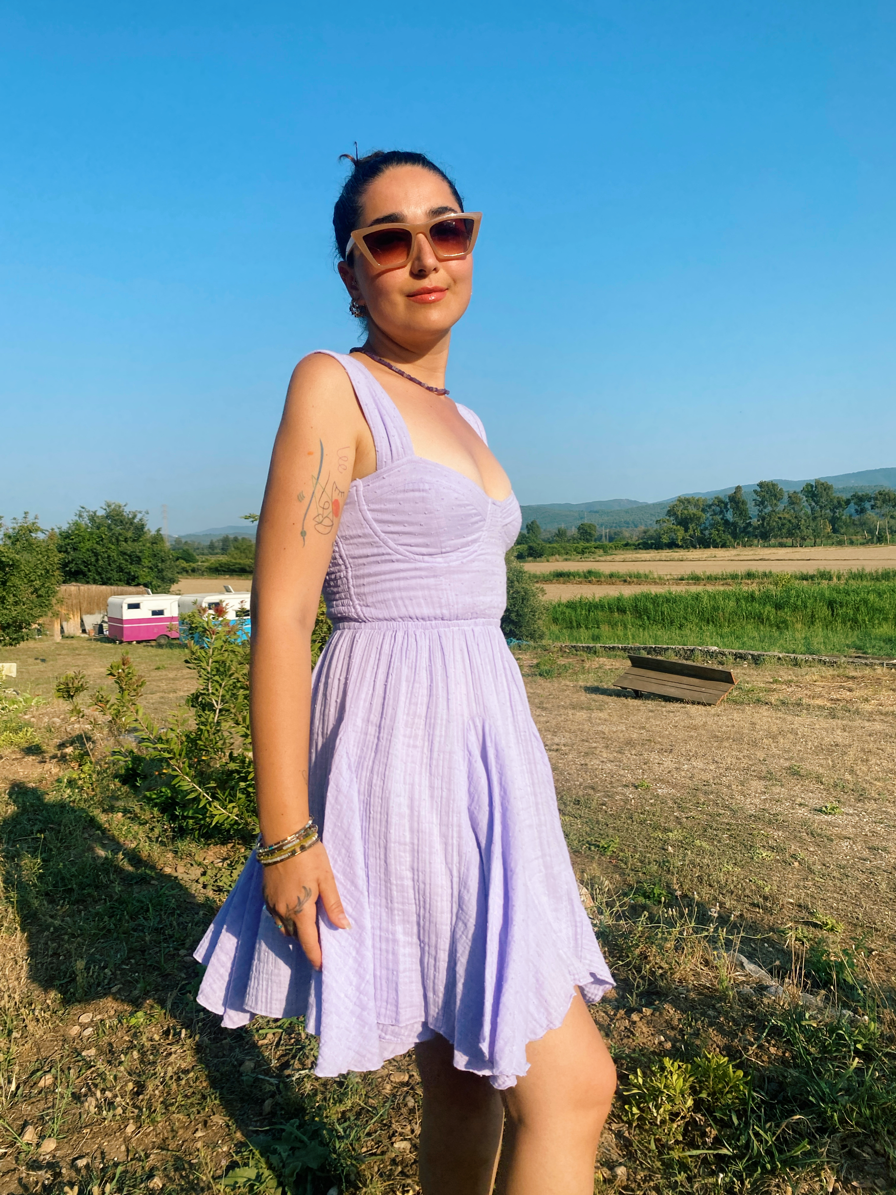 • Kalın askılı mini pamuk elbise